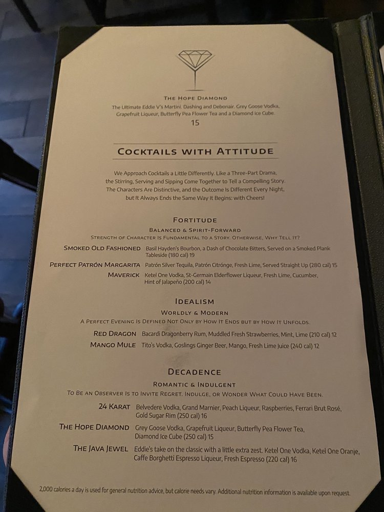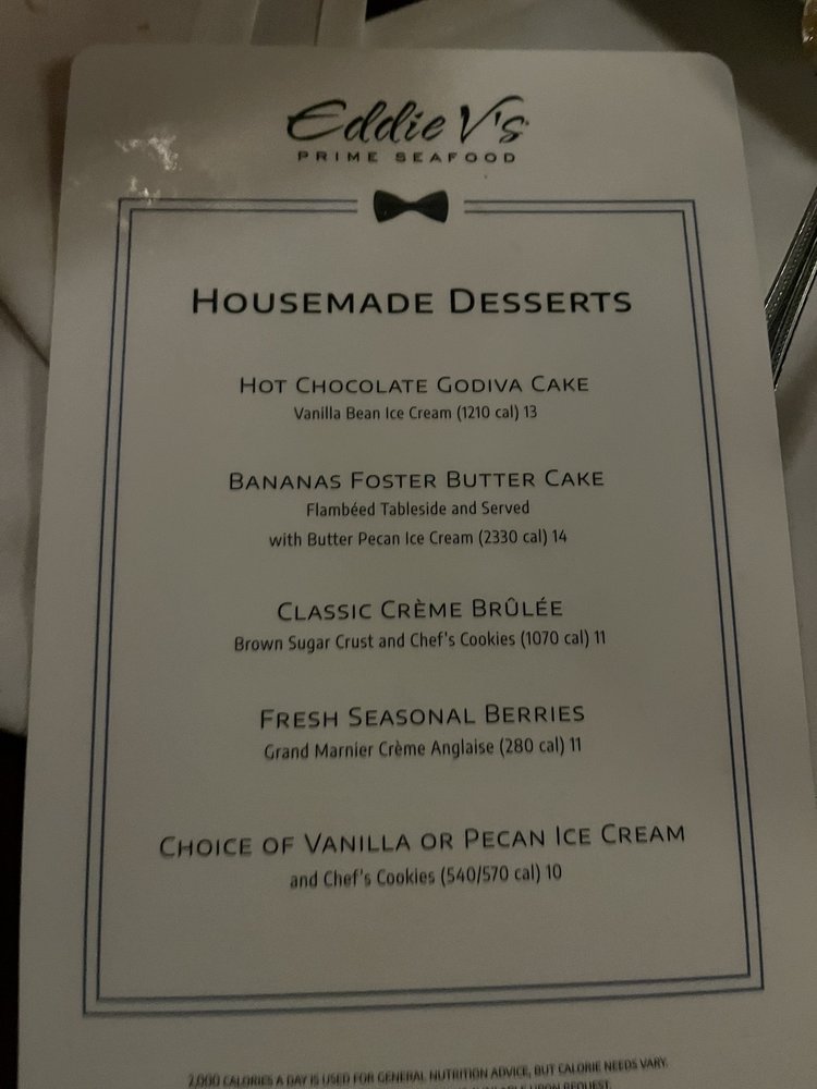 Don’t forget to save room for dessert! The Bananas Foster Butter Cake, flambéed tableside, is a must-try, while the warm Belgian chocolate cake offers a decadent closure to your meal. Eddie V’s isn’t just about food; it’s about crafting unforgettable memories with every bite.